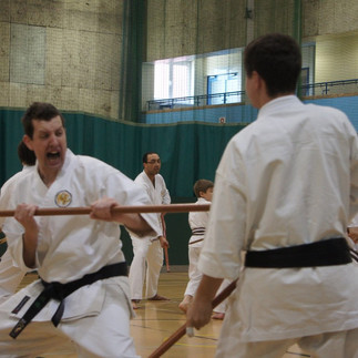 Last Sunday, a group of staff wielding karateka turned up at the Bunyan Centre in Bedford all eager to improve their skills with the Bo or Jo under the guidance of Shihan Wayne Swietoslawski. On arrival, we were told by Renshi Kidby the unfortunate news that Shihan Wayne had been rushed into hospital and would not be able to take us for training that afternoon. All of us at CFTS send our best wishes to Shihan Wayne for a speedy recovery.